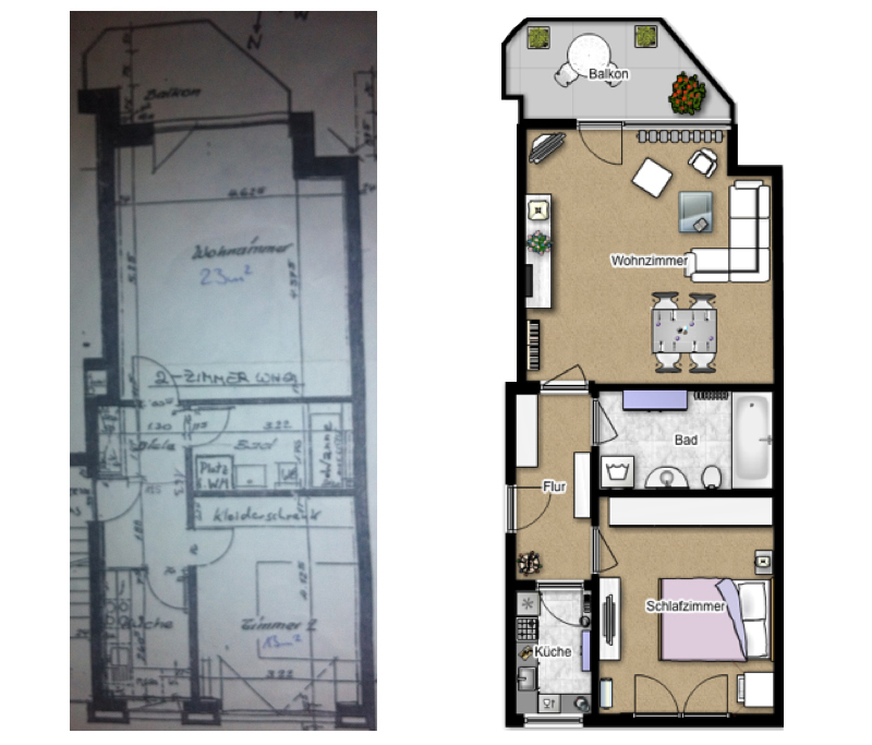 Immo Plan Design benötigt Ihre zu überarbeitenden Vorlagen und optimiert diese zu professionellen Grundrissen.